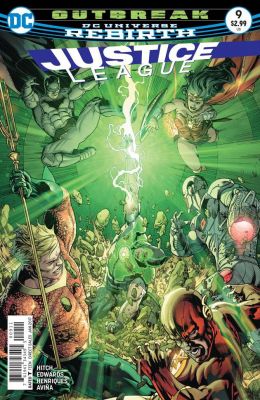 “OUTBREAK” part two! The Justice League is under attack from an unseen foe with a vendetta against Earth’s greatest heroes—someone with the power to reprogram Jessica Cruz and Simon Baz’s Green Lantern rings to kill any member of the Justice League.