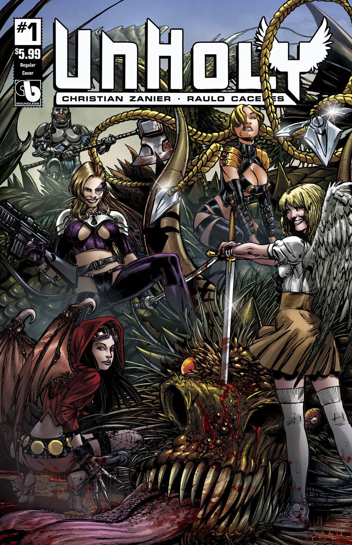 Hell won the eternal struggle long ago, and has been secretly ruling humanity ever since. With Hellina as their ultra-powerful enforcer, it seems nothing can change that. But even greater plans for final domination are made, and as the forces of Heaven catch wind, they have no choice but to make a valiant effort to turn the tide. All the holy warriors, the angelic forces, have been snuffed out or defeated. The burden falls to Yael, an angelic warrior who has seen the horrors of war for hundreds of years. Not hung up by concepts like right and wrong, she has to earn victory, for the greater good, by any means. So she sets about gathering the worst together for the best of reasons. Those that are unforgiving, unredeemed, unapologetic, and undefeated. They are the UNHOLY.